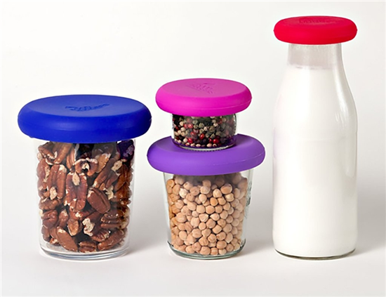 Food Huggers kunnen ook worden gebruikt in combinatie met glazen, flessen of bakjes. Zo sluit je ze makkelijk en volledig af, en blijven de spullen die er in zitten lang goed. Door de flexibele vorm en grootte passen ze op vrijwel elke pot of beker, zodat je niet meer na hoeft te denken over hoe je iets op moet slaan als je in de keuken bezig bent.