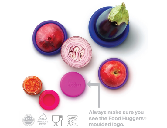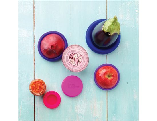 Food Huggers zijn dé oplossing voor groenten die overblijven. In plaats van bakjes in de koelkast die veel ruimte innemen of een stuk slecht plakkend folie, kunt u de Food Huggers op de open kant van het stuk groente of fruit plaatsen, zodat ze hun kwaliteit behouden. Ze zijn gemaakt van flexibel rubber dat goed blijft zitten, en voor verschillende formaten te gebruiken zijn. Er zijn daarnaast ook huggers van verschillende grootte, zodat u elk stuk fruit of groente kan beschermen. Deze set heeft groot formaat huggers die vooral geschikt zijn voor grotere groenten.